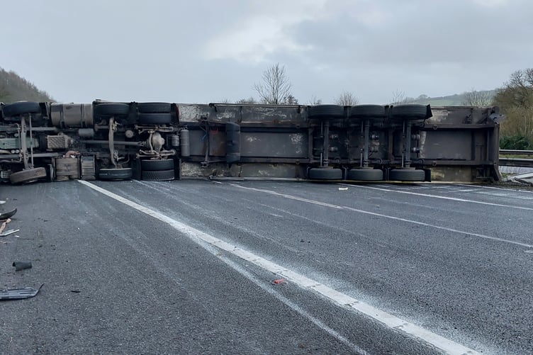 Emergency services including Devon and Cornwall Police are in attendance. National Highways have deployed resources to assist with traffic management - and is warning that recovery of the vehicle is "expected to be protracted" and the road will remain closed for several hours.