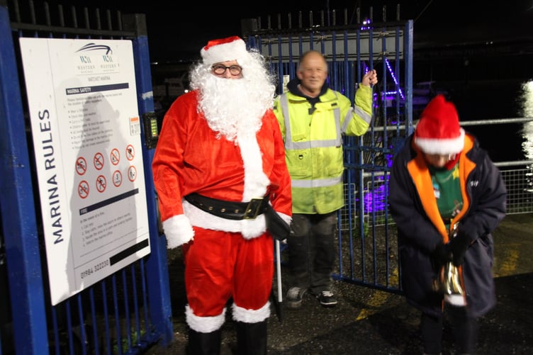 Santa steps ashore in Watchet Marina to a warm welcome from the crowds during the town's late night extravaganza. PHOTO: George Ody.