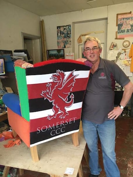 By the end of the day he had created a wing-back chair that was covered with rainbow colours on one arm to honour all key workers. The other arm was blue, the colour of Mind in Somerset, while the back was covered in the Somerset CCC logo.