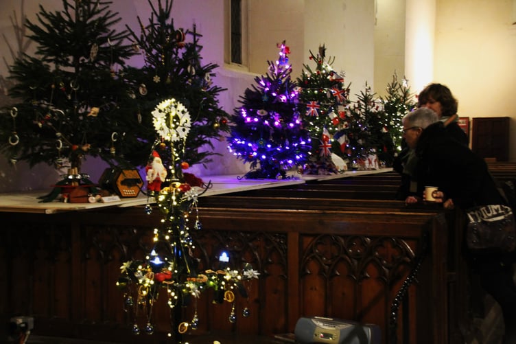 Visitors admire the Christmas trees in St Andrew's Church, Stogursey. PHOTO: George Ody.