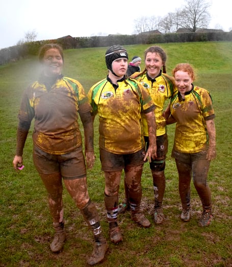 In very wet and muddy conditions, the girls faced Dorset and Wilts in the first match, winning that match by the only try of the game, scored by Abi Pentland